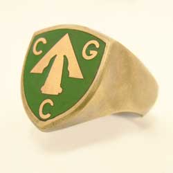 To the right is a photo of the same ring in bronze which has been customized by the addition of the letters CGC to indicate that the wearer is a Companion of the Greenwood Company.